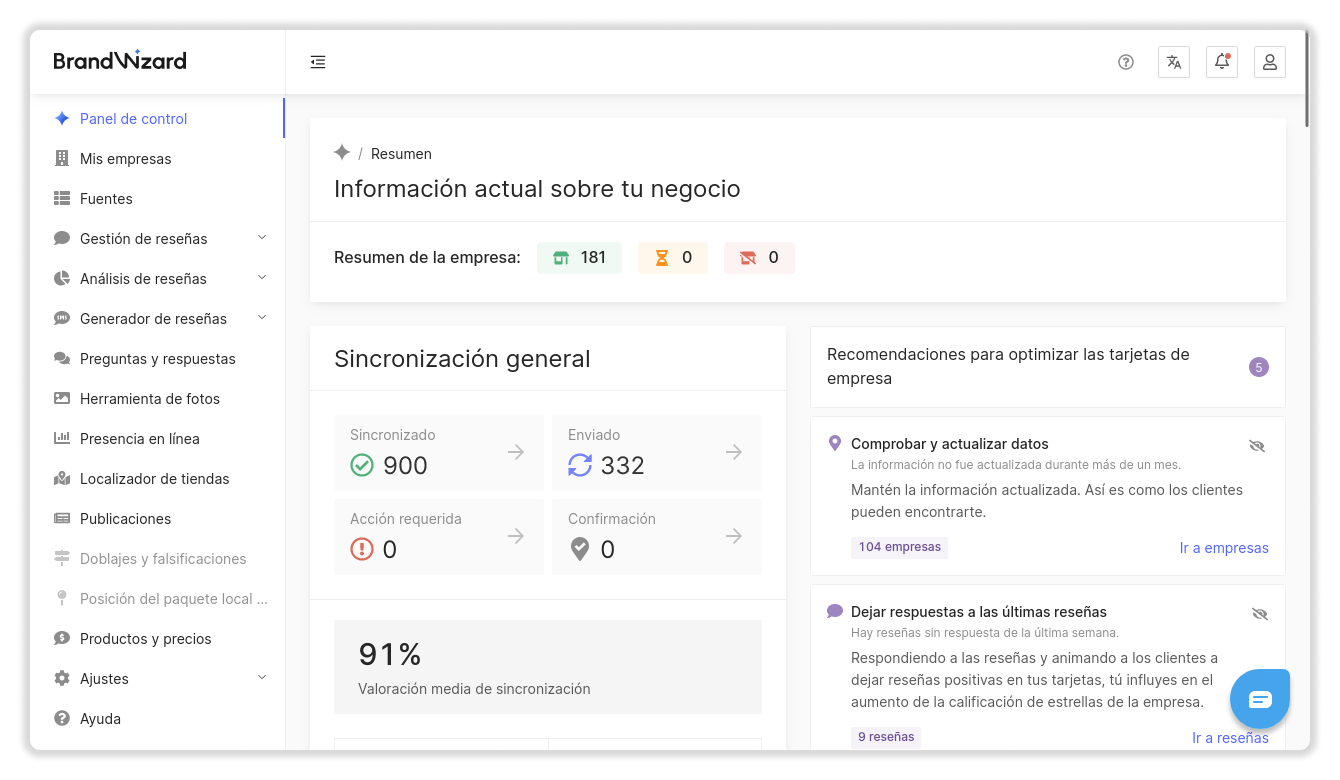 BrandWizard recopilará datos correctos sobre cada una de sus ubicaciones, los enviará automáticamente a más de 30 fuentes populares y mantendrá estos datos actualizados diariamente.