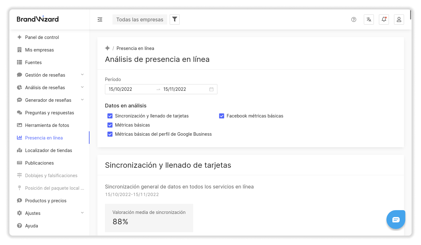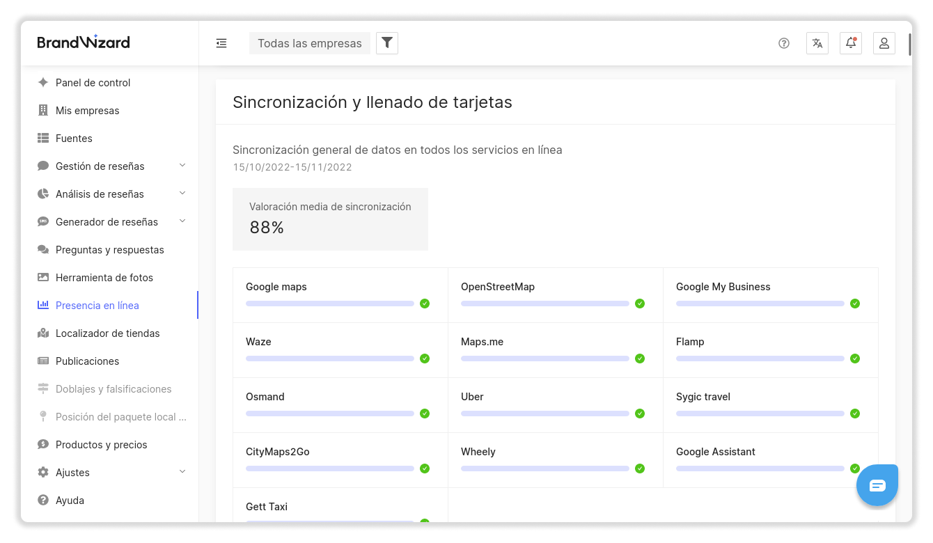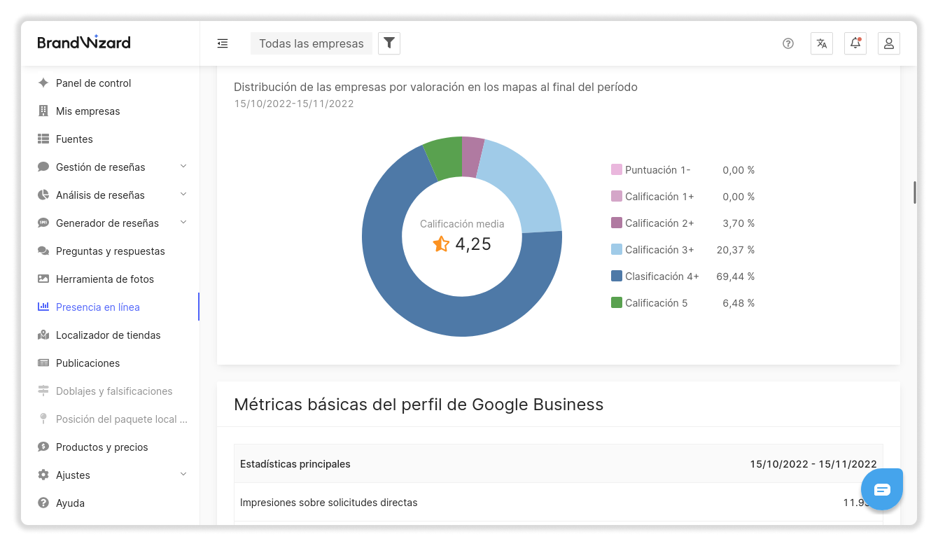 Obtendrá un detallado informe sobre la presencia en línea de su empresa, permitiéndole evaluar su representación actual en los geoservicios