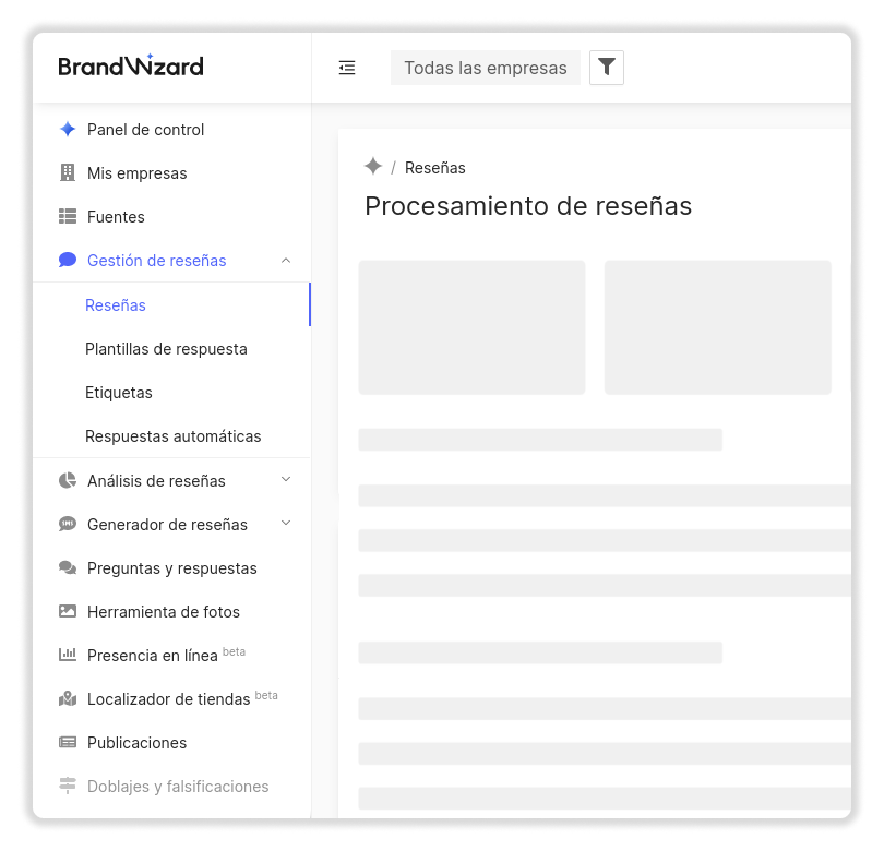 BrandWizard se encargará de monitorizar las reseñas de su empresa en los directorios más populares y le proporcionará una única interfaz para gestionarlas fácilmente.