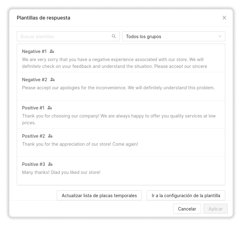 Cree plantillas de respuesta para diferentes tipos de reseñas en BrandWizard y utilícelas para responder a más comentarios en el menor tiempo posible.
