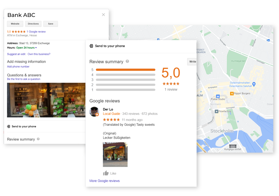 Encuentre todos los duplicados y falsificaciones de sus ubicaciones en Google para dirigir a los clientes a la dirección correcta, evitar la pérdida de reseñas y mejorar el ranking de sus tarjetas en los resultados locales.