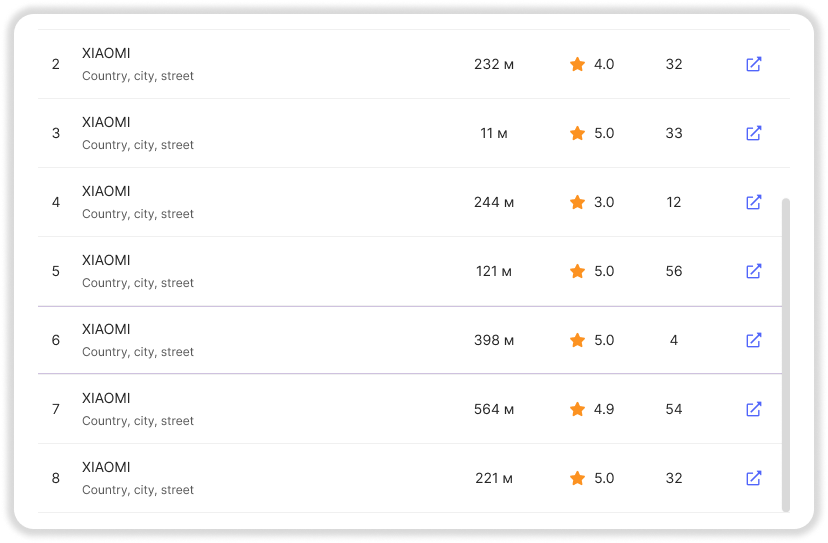 Monitoree las posiciones de su empresa en los resultados de búsquedas locales para las palabras clave. Identifique oportunidades de crecimiento y optimice los resultados de sus estrategias promocionales.